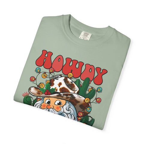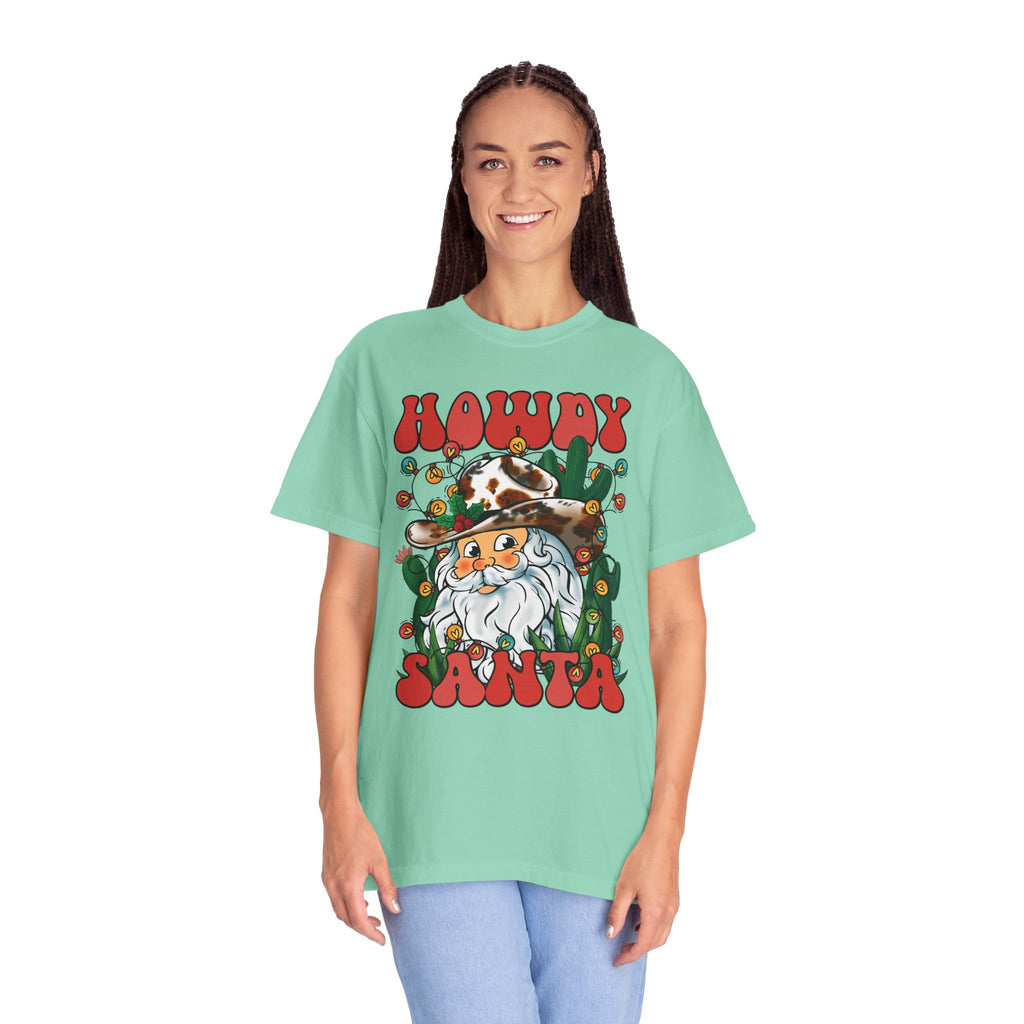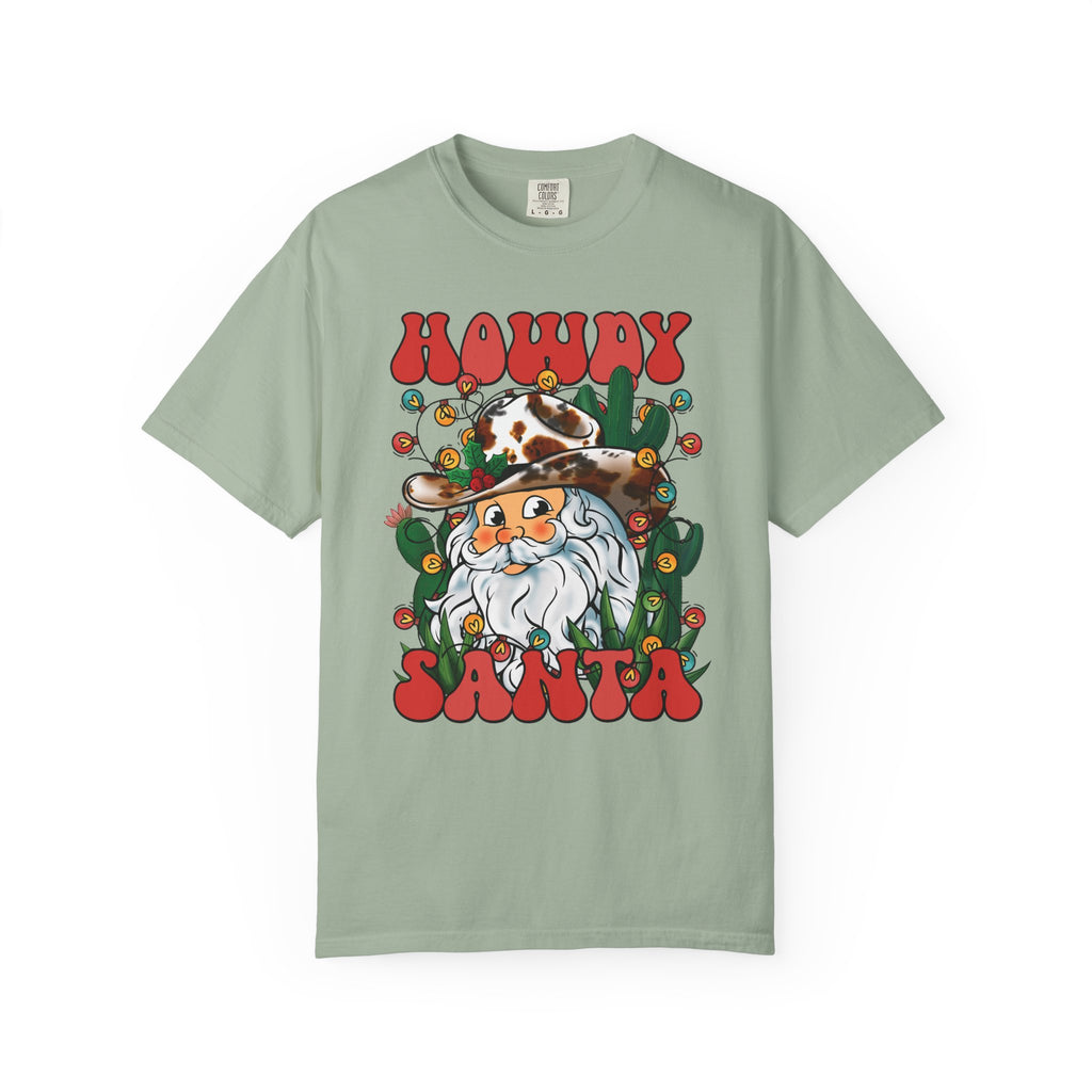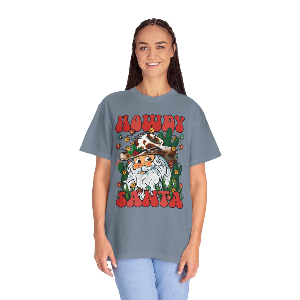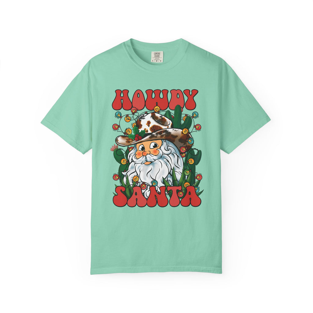 This soft, garment-dyed tee brings a warm, playful twist to holiday wear. The front shows a friendly bearded Santa in a cowboy hat, framed by string lights and cacti — equal parts roadside diner charm and yuletide cheer. The relaxed cut and medium-weight 100% ring-spun cotton feel lived-in from the first wear. Toss it on for laid-back holiday gatherings, country Christmas markets, or a cozy evening around string lights and fire. It’s the kind of shirt that sparks smiles and conversation while staying comfortable through many seasons of wear.
